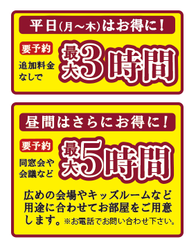 サークル活動の打ち上げや、友人との集まりにぴったり!誕生日パーティーや、記念日の集まりにもおすすめです。